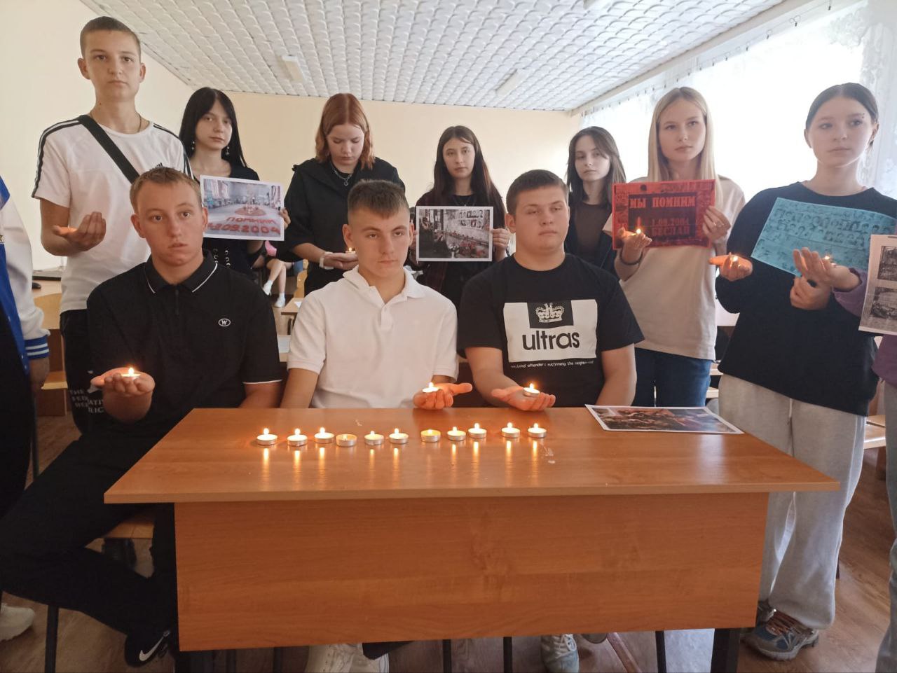 Сегодня студенты приняли участие в мероприятиях, посвящённых 20- летию трагедии в Беслане: акция» Капля жизни», час памяти » Прерванный урок», кинолекторий «Трагедия в Беслане». Только объединившись, все вместе мы сможем противостоять терроризму. Надеемся, что слово » терроризм» навсегда исчезнет из нашего словаря, страшные события больше никогда не повторятся!