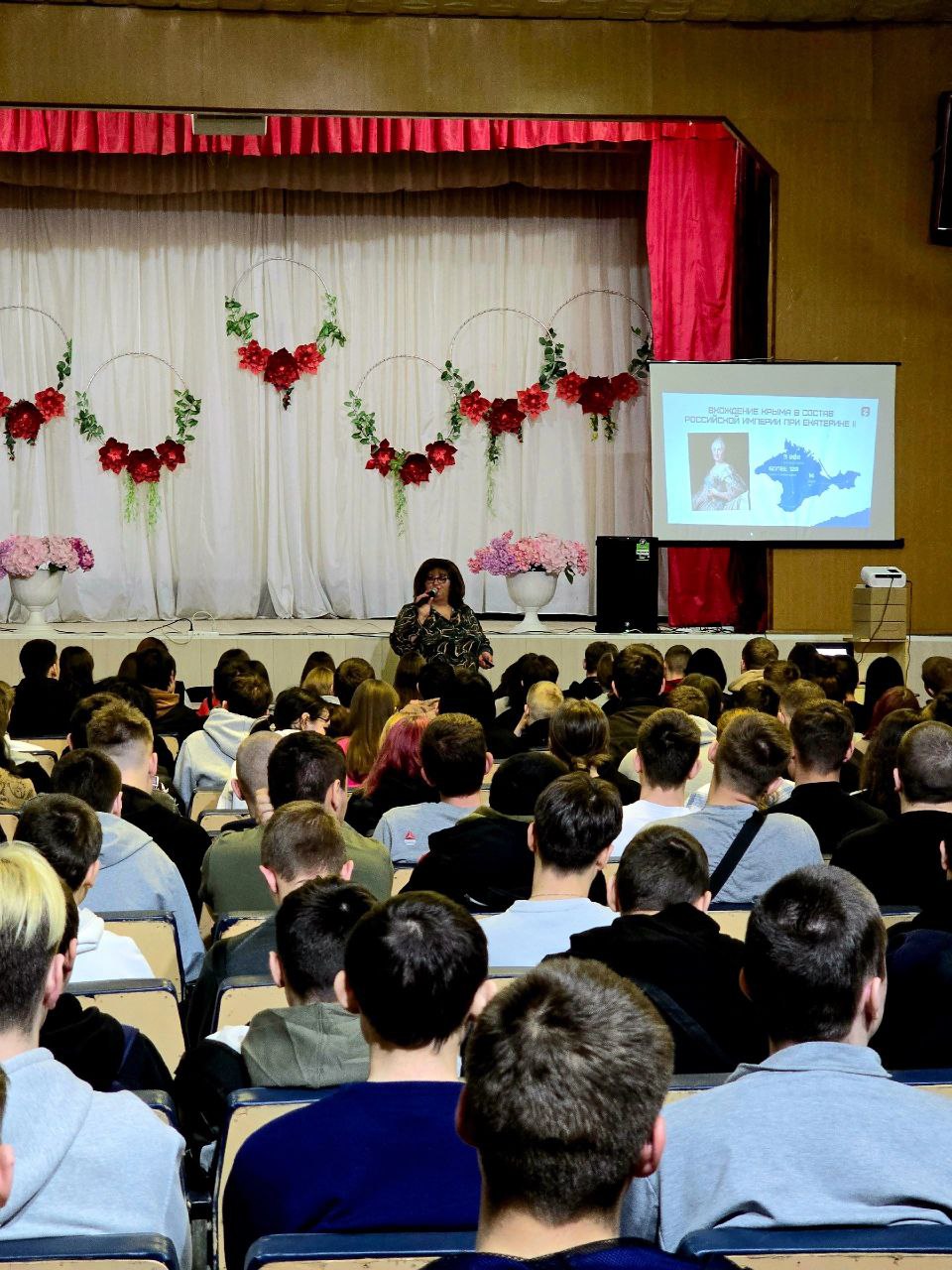 Просветительская лекция на тему: «Крым: вчера, сегодня, завтра» проведена для студентов колледжа лектором Российского общества «Знание» Кобзарь В. Е.
