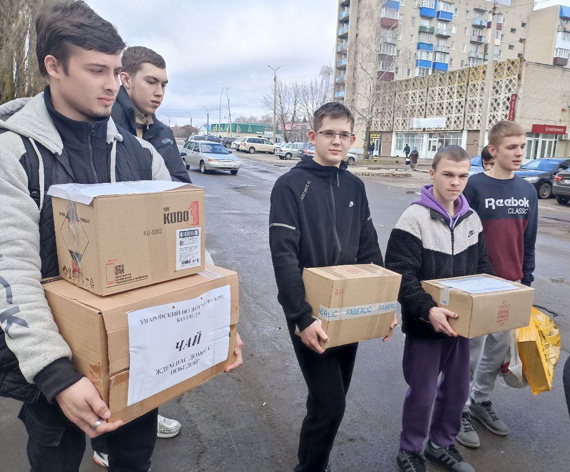 Уваровский политехнический колледж на постоянной основе оказывает бойцам СВО гуманитарную помощь. Студенты и преподаватели активно участвуют в благотворительных акциях. В этот раз студенты написали ребятам письма- поддержки, изготовили сувениры, отправили сладости, тушенку, консервы, чай, предметы личной гигиены, крупы, макароны, питьевую воду. А после занятий педагоги со студентами продолжают плести маскировочные сети, готовят окопные свечи. Каждый участник акции старается подарить российским солдатам частичку душевной теплоты. Очень ждём возвращения наших бойцов домой с победой!
