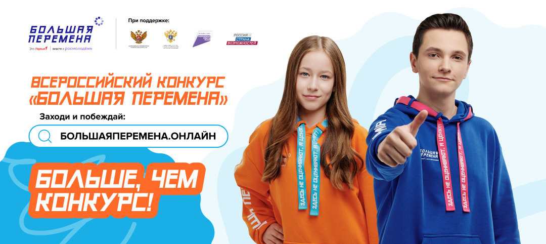 Уже шестой год Всероссийский конкурс «Большая перемена» объединяет миллионы мальчишек и девчонок со всей страны, а за все сезоны его участниками стали более 6 миллионов человек — это только начало!