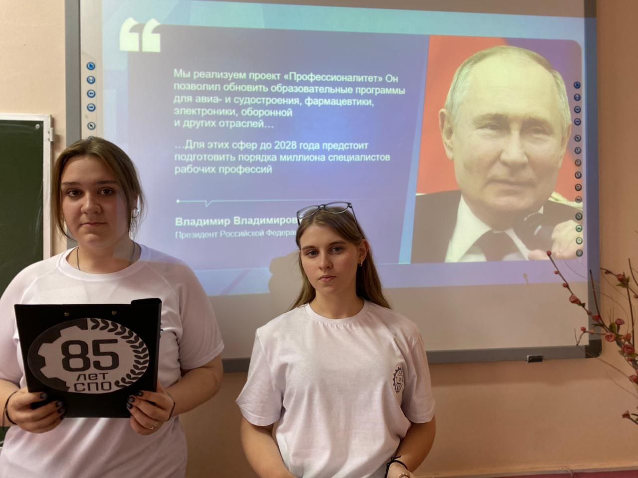 В рамках Единого дня открытых дверей команда амбассадоров профессионалитета Уваровского политехнического колледжа провела Всероссийский классный час на тему: «Профессионалитет: Ты в хорошей компании» для обучающихся 9 классов МБОУ » Лицей г. Уварово им. А. И. Данилова «. Амбассадоры рассказали школьникам о том, как сделать обучение не только полезным, но и увлекательным, поделились своим опытом, познакомили со специальностями, которые можно освоить в колледже, и со студенческой жизнью.
