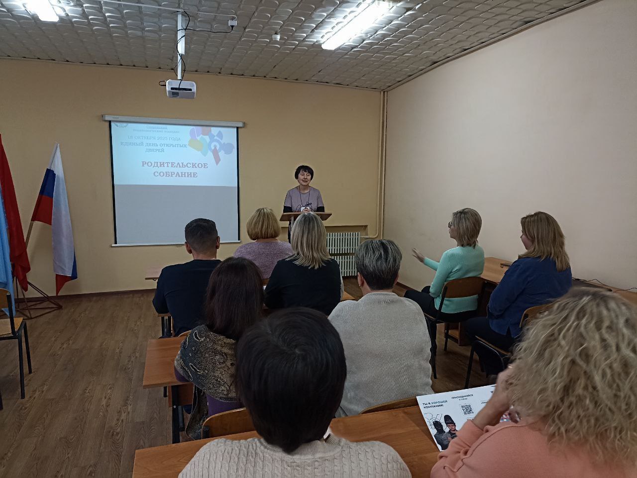 В рамках Единого дня открытых дверей в ТОГБПОУ «Уваровский политехнический колледж» состоялось родительское собрание будущих абитуриентов, которое провели заместитель директора по учебной работе Кухарская О. Б. и ответственный секретарь приемной комиссии Клишина О. И. Родителям рассказали о правилах приёма, возможностях и перспективах обучения в колледже, познакомили с основными положениями, целями и задачами федерального проекта «Профессионалитет».