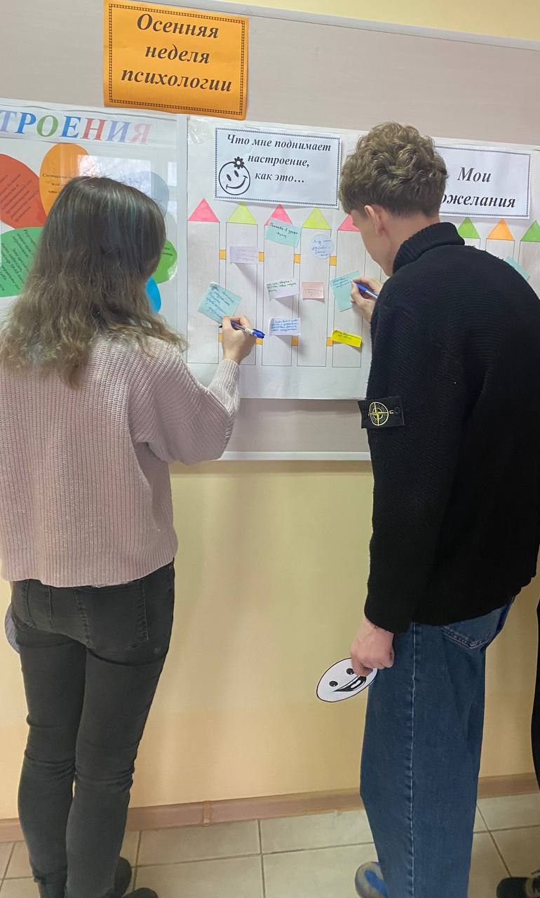 В рамках осенней Недели психологии, проходившей в колледже с 17 по 21 ноября, проведены мероприятия педагогом-психологом с обучающимися на сплочение коллектива «Мы- команда», тренинговые занятия по совершенствованию навыков общения, формированию благоприятного климата в группе. На занятии «Все в твоих руках» психолог рассказала студентам о том, как справиться с трудными жизненными ситуациями. Кураторы в группах провели классные часы на тему: «Мы вместе и это здорово!», «Группа глазами каждого». Для ребят оформлены тематические плакаты: «Мои пожелания», «Радуга настроения», «Повышаем самооценку». С педагогами колледжа психолог провела тренинг «Мы и наш коллектив».